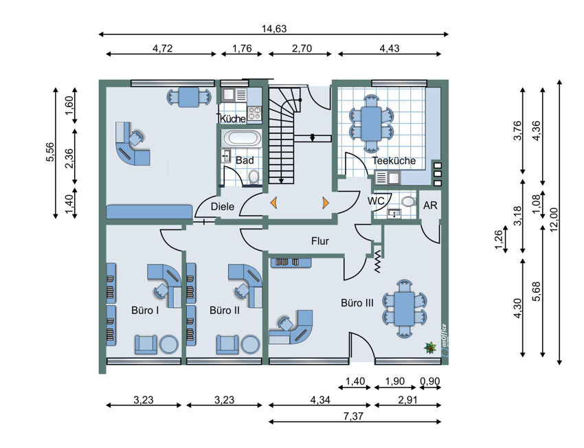 - vier separate Büroräume