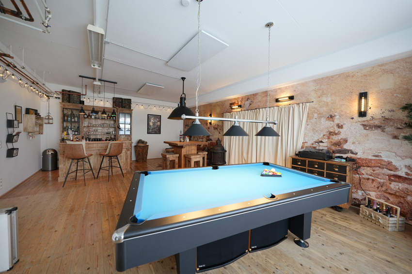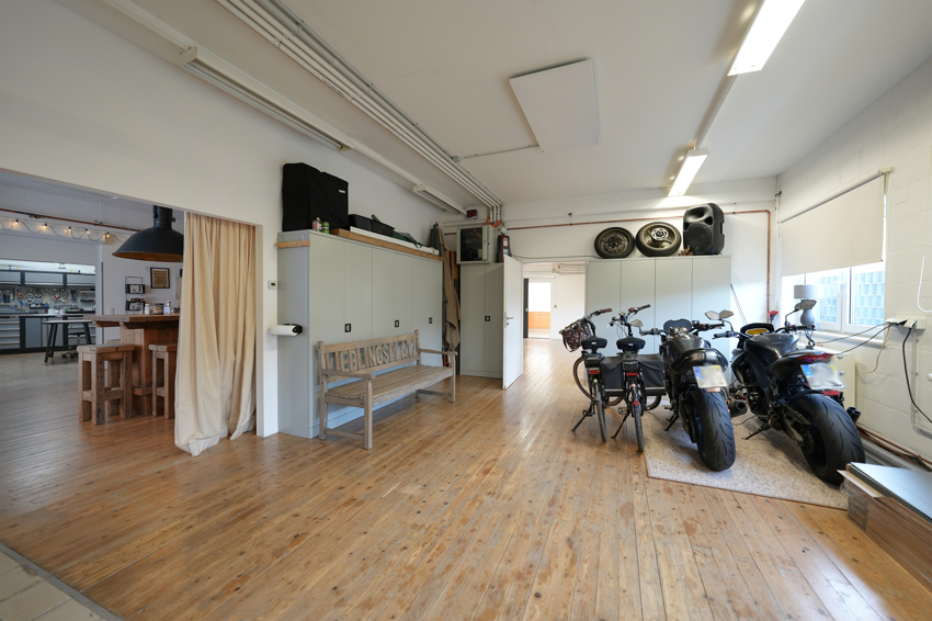 Der Gewerbebereich im 1992 errichteten Neubau bietet rund 417 m² Fläche und überzeugt mit vielfältigen Nutzungsmöglichkeiten, z. B. für Handwerk, Lager, Ausstellung oder Büro. Es gibt eine attraktive Küche und Damen-/Herren WC. Ein schöner Aufenthalts-/Pausenraum ist ebenfalls vorhanden. Vormals wurde diese Fläche als Filmstudio genutzt.