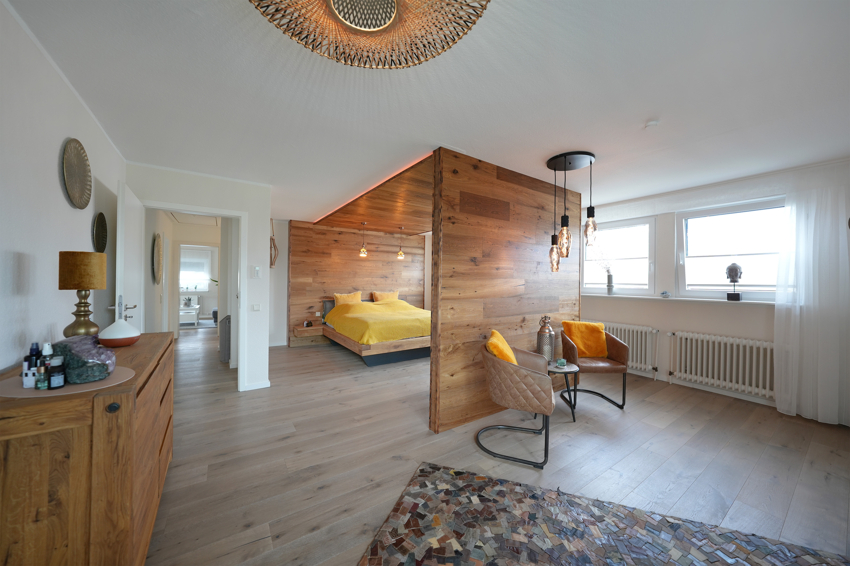 Zusätzlich im rückwärtigen Altbaubereich ist ein weiterer Wohnraum und ein separates Gästezimmer – ideal auch für längere Aufenthalte Ihres Besuchs inklusive viel Privatsphäre mit Wohlfühlgarantie.