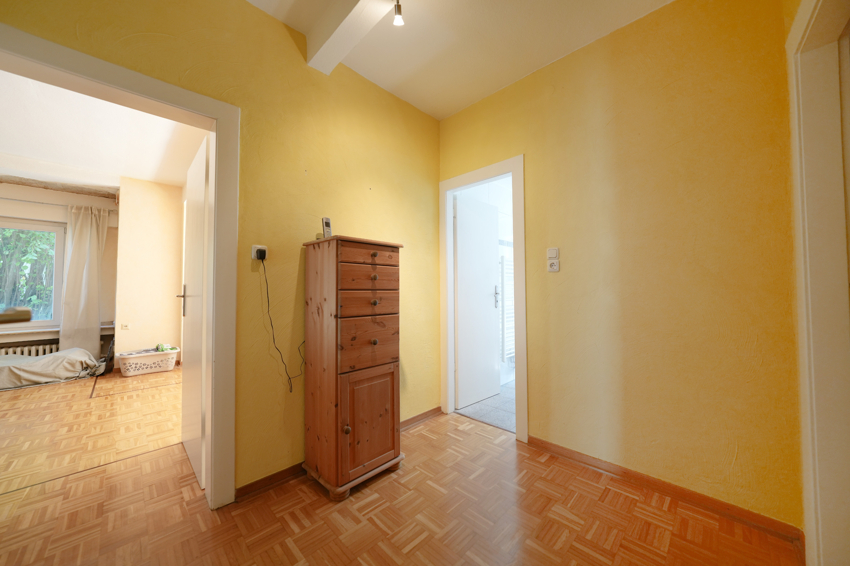 Erdgeschoss sowie Obergeschoss bieten je rund 70 m² große 2-Zimmerwohnungen. Gut zu wissen: Eine Neuaufteilung als 3-Zimmerwohnungen wäre ebenfalls möglich. Das Auge wohnt mit: Aus nahezu jedem Raum darf Ihr Blick ins Grüne schweifen, welche Lage bietet schon diesen Luxus?