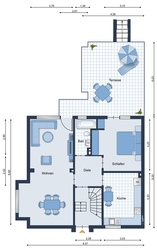 Eine wirklich hochinteressante Immobilie, die Sie sowohl als Einfamilienhaus wie auch als Zweifamilienhaus nutzen können. Übrigens stehen Backsteinhäuser nach wie vor hoch im Kurs, nicht nur aufgrund der wohligen Ausstrahlung, sondern auch wegen der geradlinigen Grundrisse, die perfekte Stellmöglichkeiten bieten.