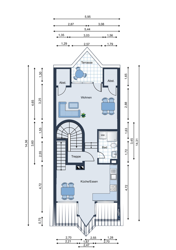 Die Eigentümerwohnung wird im Spätsommer frei. Die Dachgeschosswohnung ist mit einer Kaltmiete von € 620,00 € zzgl. 20,00 € für die Einbauküche gut vermietet.