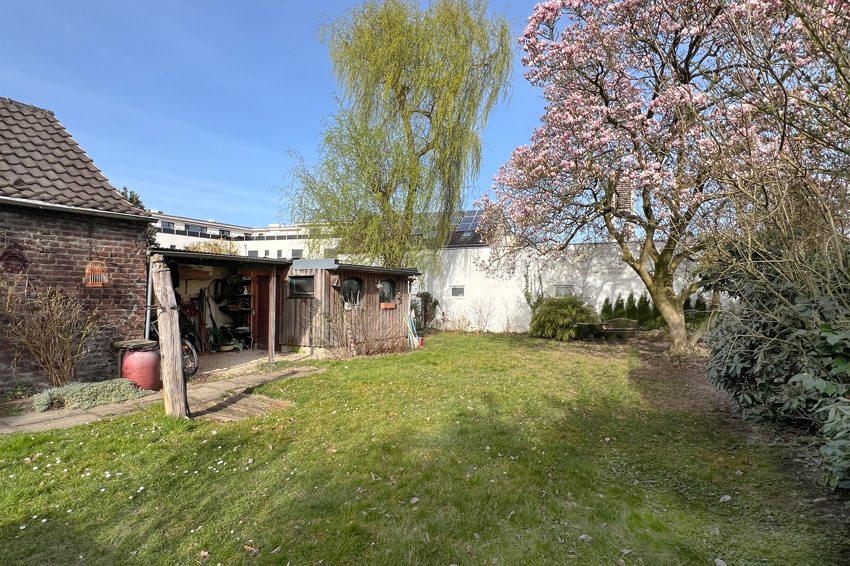 Prunkstück des Gartens ist die schön gewachsene Magnolie. Der Garten besteht überiwegend aus Rasenfläche. Linker Hand gibt es ein Gartenhaus sowie einen Bereich für Gartengeräte. Der Garten ist nahezu uneinsehbar. Obwohl Sie sich mitten im Herzen von Fischeln befinden, herrscht hier absolute Ruhe!