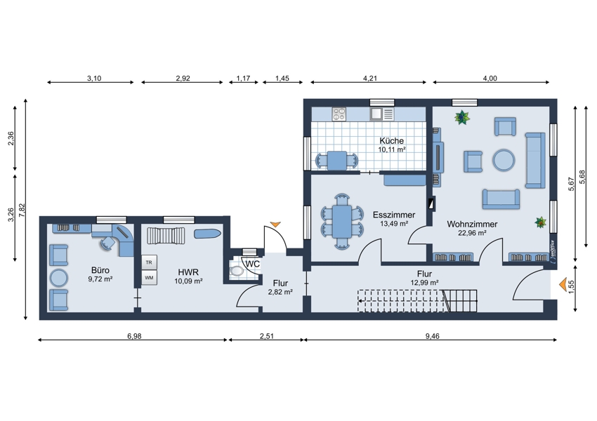 - HWR im Erdgeschoss mit Waschmaschinenanschluss