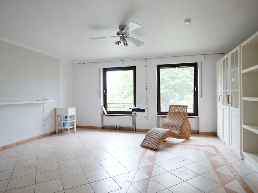 Zurück im Haus gelangen Sie vom Wohnzimmer aus ins Obergeschoss. Dort gibt es ein Elternschlafzimmer, ein Kinderzimmer sowie ein geschmackvolles, im Jahr 2011 saniertes Duschbad mit Fenster.