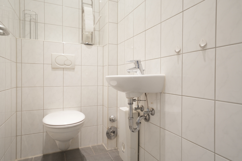 Das moderne Duschbad und das separates Gäste-WC sind geschmackvoll und neuwertig.