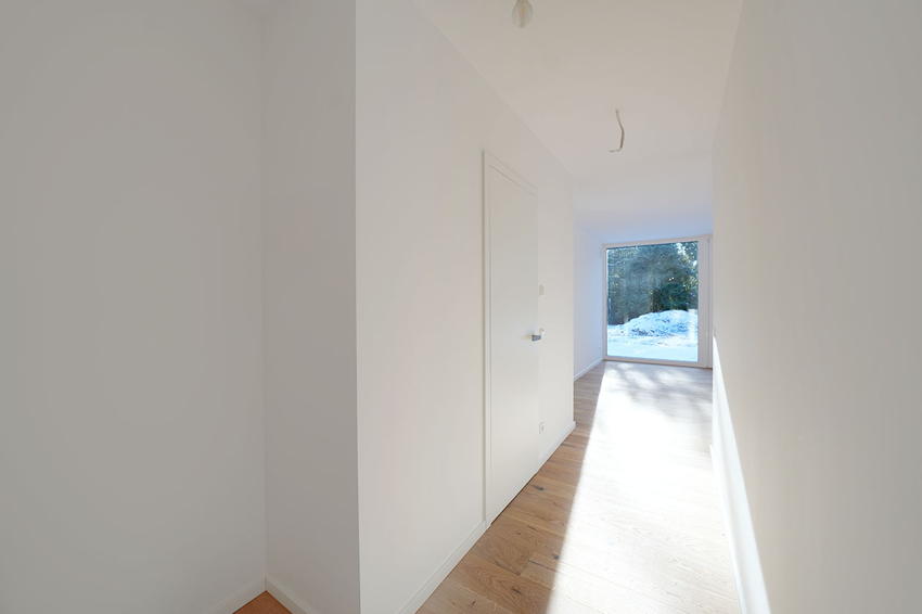Nicht nur der Grundriss überzeugt, sondern auch die Ausstattung: Echtholzdielen, Fußbodenheizung und bodentiefe Fenster schaffen ein tolles Wohnambiente.