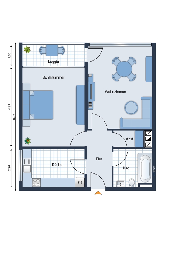Diese Wohnung bietet ein gut durchdachtes Raumkonzept, in dem Sie sich wohlfühlen können: zwei Zimmer, eine separate Küche, Diele sowie ein Wannenbad und – wichtig! – einen gemütlichen Balkon.