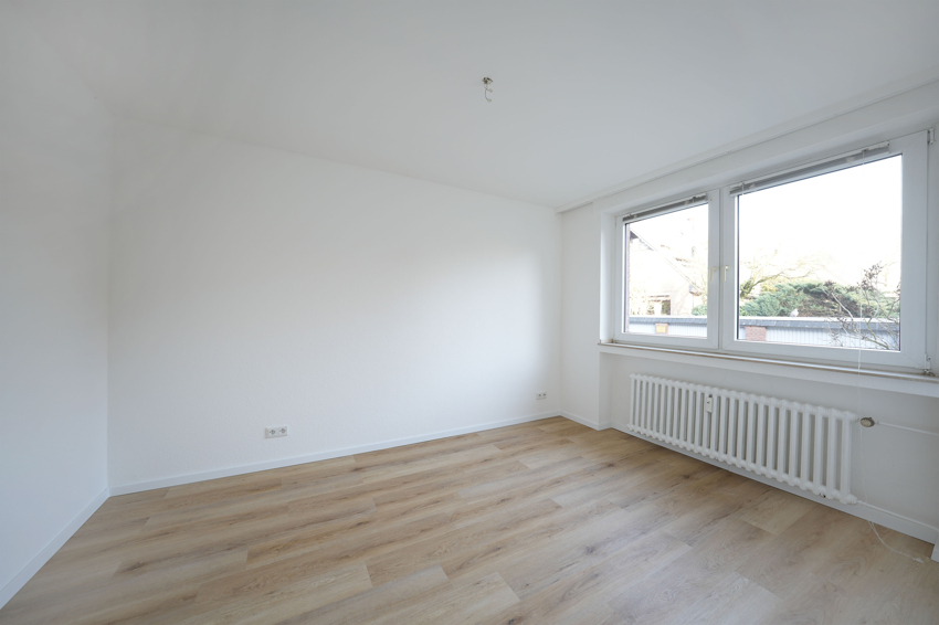 Von hier aus geht es ins Schlafzimmer, das mit einem neuen Vinylboden in Holzoptik ausgestattet wurde.