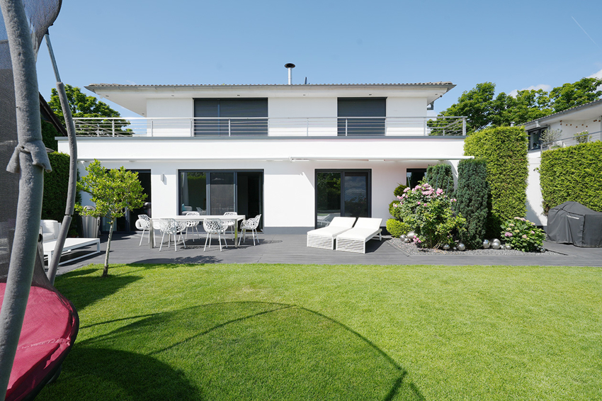 Unser Fazit: Wenn Sie puristische Ästhetik lieben, wenn Sie gern den Sommer gemütlich auf der Terrasse verbringen und barfuß über den Rasen laufen, komfortabel in sehr guter Lage wohnen möchten, sind Sie hier genau richtig.