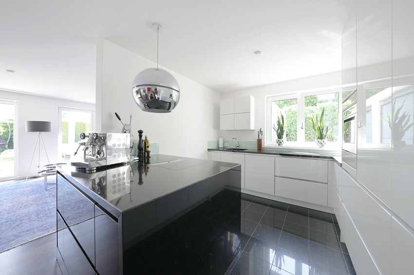 Die Wohnung empfängt Sie mit einem wunderbar hellen Wohnzimmer und offener Küche. Diese ist zeitlos in schwarz/weiß gehalten und integriert sich harmonisch in den üppigen Wohnbereich. Der Blick ins Herzstück der Wohnung, den eigenen Garten, ist unbezahlbar. Ebenso der Luxus, das Wohnen bei gutem Wetter nach draußen zu verlagern.