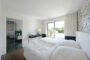 Welch ein Luxus: Das Schlafzimmer fängt mit seinen bodentiefen Fenstern extra viel Tageslicht ein und hat als Bonbon Zugang zum Garten. Zwei weitere Räume mit eigenem Duschbad eignen sich perfekt als Kinderzimmer oder Homeoffice.