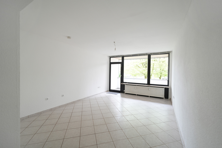 Das einladende Wohnzimmer mit Schlafnische hat eine angenehme Größe von rund 23 m², einen sehr guten Zuschnitt und gewährt Zugang zur Loggia. Hier Sie haben einen schönen Grünblick.