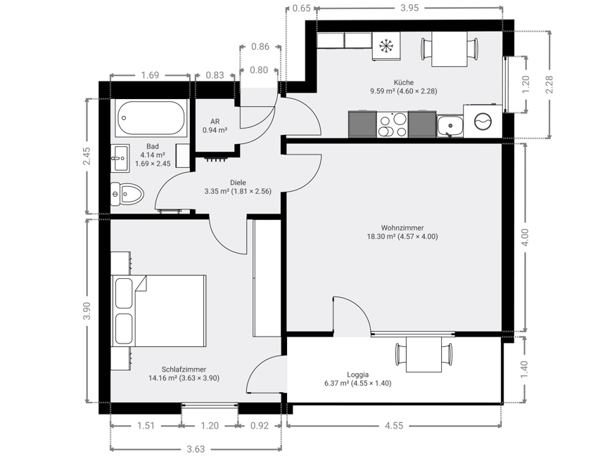Diese kernsanierte 2 Zimmerwohnung befindet sich im 4. Obergeschoss eines gepflegten Mehrfamilienhauses. Bereits beim Betreten wird deutlich: Hier wurde an nichts gespart.