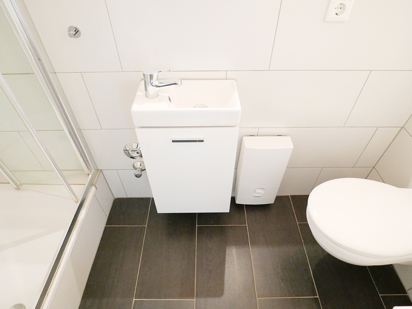 Das geschmackvoll sanierte Gäste-WC verfügt über eine Dusche.