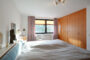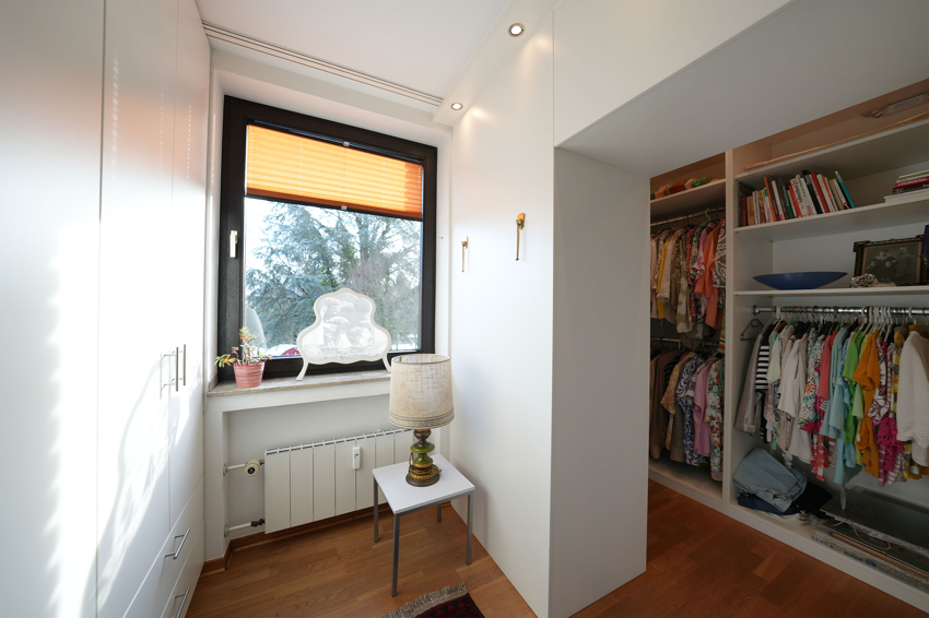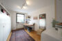 Im Wohnzimmer führt eine Wendeltreppe in die obere Wohnebene. Hier gibt es neben einem weiteren großen Schlafraum ein Kinderzimmer, das derzeit als begehbare Ankleide umgebaut ist. Ein zweites Wannenbad rundet das Raumangebot ab.