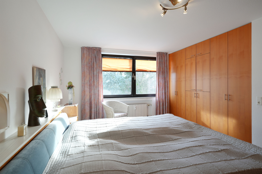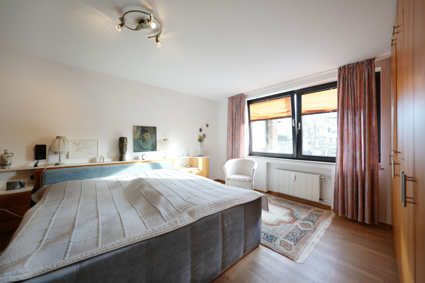 Zur anderen Seite führt die Diele zu den drei Schlafräumen, wovon das größte Zimmer Zugang zum zweiten Balkon hat. Das mittig gelegene Bad wurde modernisiert und mit Wanne, Dusche und Bidet ausgestattet.