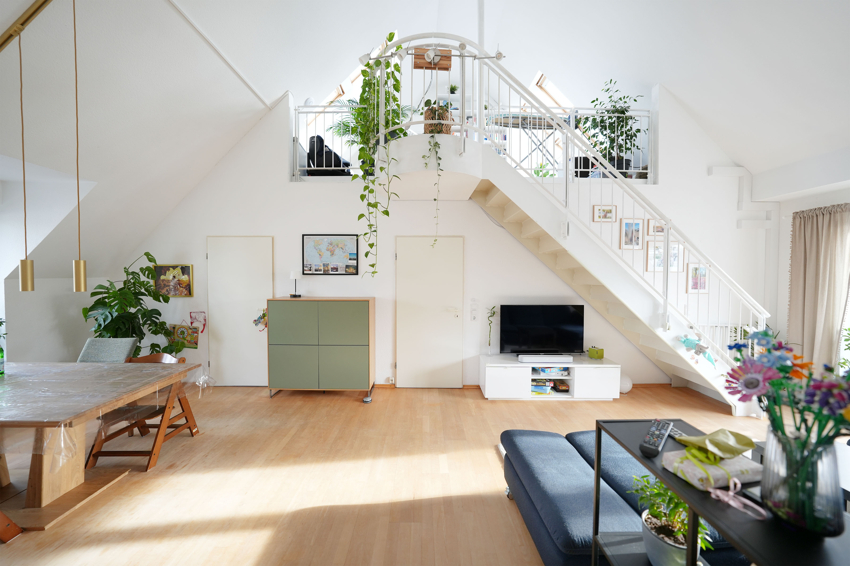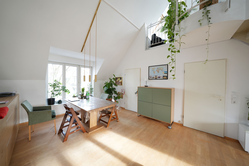 Das helle Treppenhaus ist mit Naturstein versehen und hier, im 2. Obergeschoss, erwartet Sie eine ganz besondere Wohnung. Mit 5 Zimmern erstreckt sie sich großzügig über 2 Ebenen, dabei präsentiert sie sich modern, hell und total gemütlich.